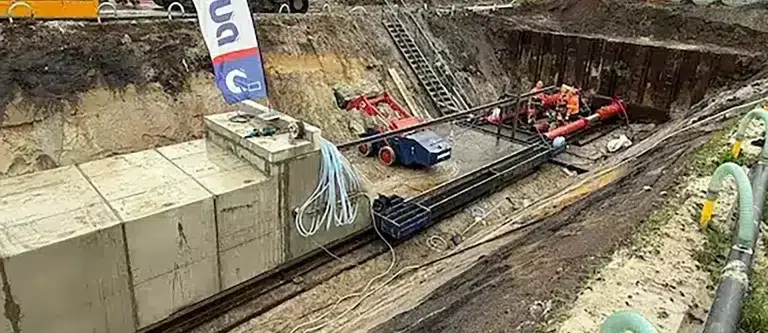 Deze tunnelmoot is voor de helft voorgebouwd en vervolgens in het weglichaam getrokkenopgebouwd uit 4 prefab moten en door middel van 3 natte knopen aan elkaar gestort tot één geheel. Vervolgens is de duiker door middel van de perstechniek onder de weg door geschoven. Door de beperkte inwendige afmetingen is ervoor gekozen om de vrijkomende grond uit de duiker te verwijderen met behulp van een elektrisch aangedreven minishovel. De minishovel is speciaal omgebouwd, zodat deze geschikt is voor duikers met een inwendige hoogte van minimaal 1,00m.