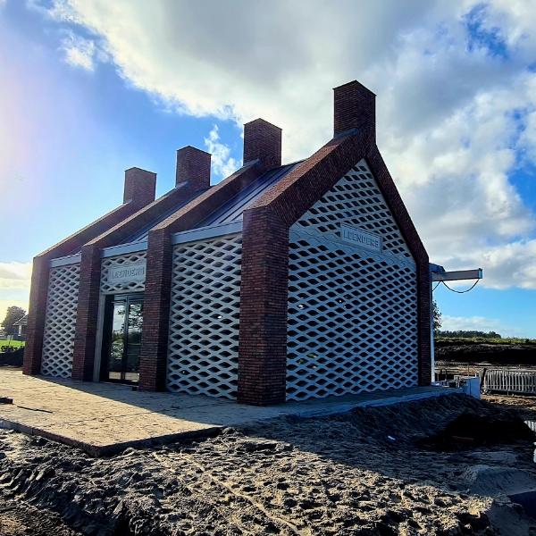 De bovenbouw oogt karakteristiek en is voorzien van semi-transparante gevels. Na zonsondergang schijnt er gekleurd licht naar buiten. De LED-verlichting kleurt rood wanneer er drie pompen draaien en groen als er één pomp draait. De gevels en de instroom zijn gemaakt van geopolymeerbeton, een cementloos materiaal dat bijdraagt aan het verminderen van de CO2-uitstoot.