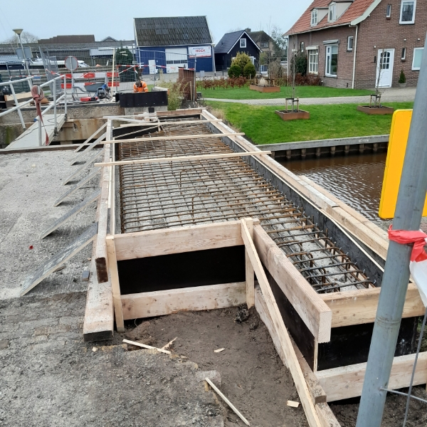 In opdracht van de gemeente Steenwijkerland hebben we de brug in de Jonenweg te Giethoorn gerenoveerd. Om te voorkomen dat wachtend autoverkeer op de aanbruggen zouden komen te staan, hebben we de schampkanten van de aanbruggen verhoogd.